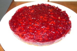 Alternativ kann man auch anderes Obst mit Guss darauf tun. Mit den Preiselbeeren wird es sehr süß, da sie meist ordentlich gezuckert sind (vielleicht findet man alternativ ja welche mit weniger Zucker).