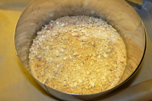 Anmerkung: Den Backrahmen sollte man möglichst klein einstellen. Da im Teig kein Backtriebmittel ist, geht er auch nicht hoch. Bei großer Grundfläche wird der Kuchen dann doch recht platt (siehe Bilder. Da ist der Tortenring mit ca. 22 cm doch zu groß).